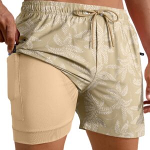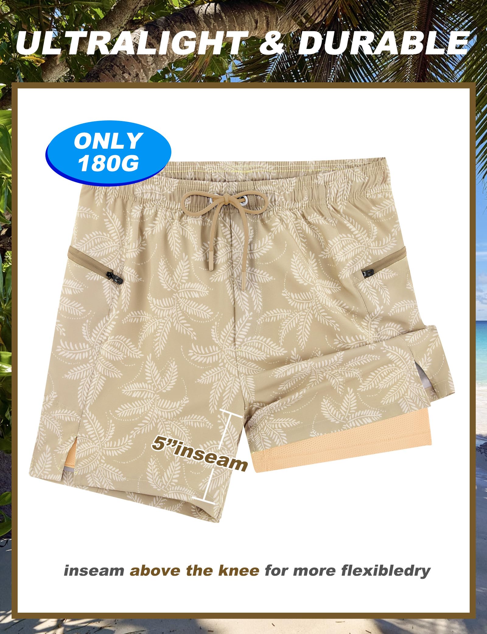 - 2 in 1 Mens Swim Trunks: swim shorts feature a Butterfly Hole compression liner that won’t stick to the skin when wet like a mesh liner would. 4-way stretch compression boxer brief ensure snug fitting while helping improve mobility.Prevents itching caused by sand,double layer no mesh prevents the outer fabric from rubbing against the skin .You won’t feel tight or insecure in these no-chafing swimming trunks.