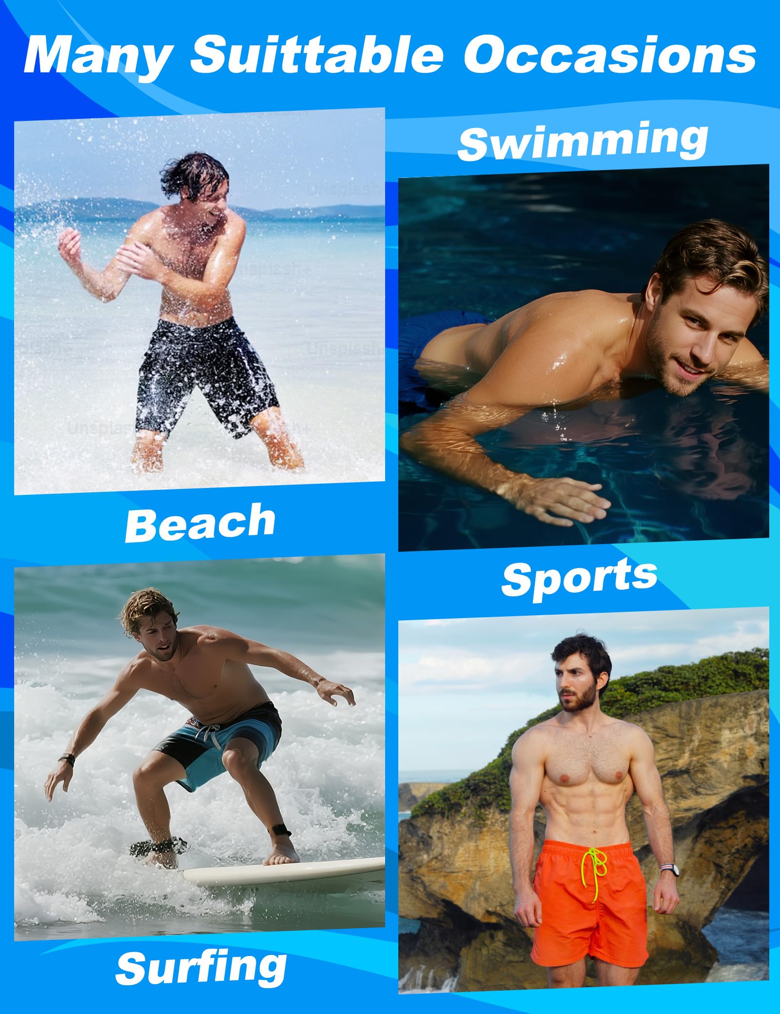 - Wide Application: Men’s swimsuits are suitable for a variety of settings, including indoor and outdoor activities such as swimming, surfing, running, gym workouts, casual outings