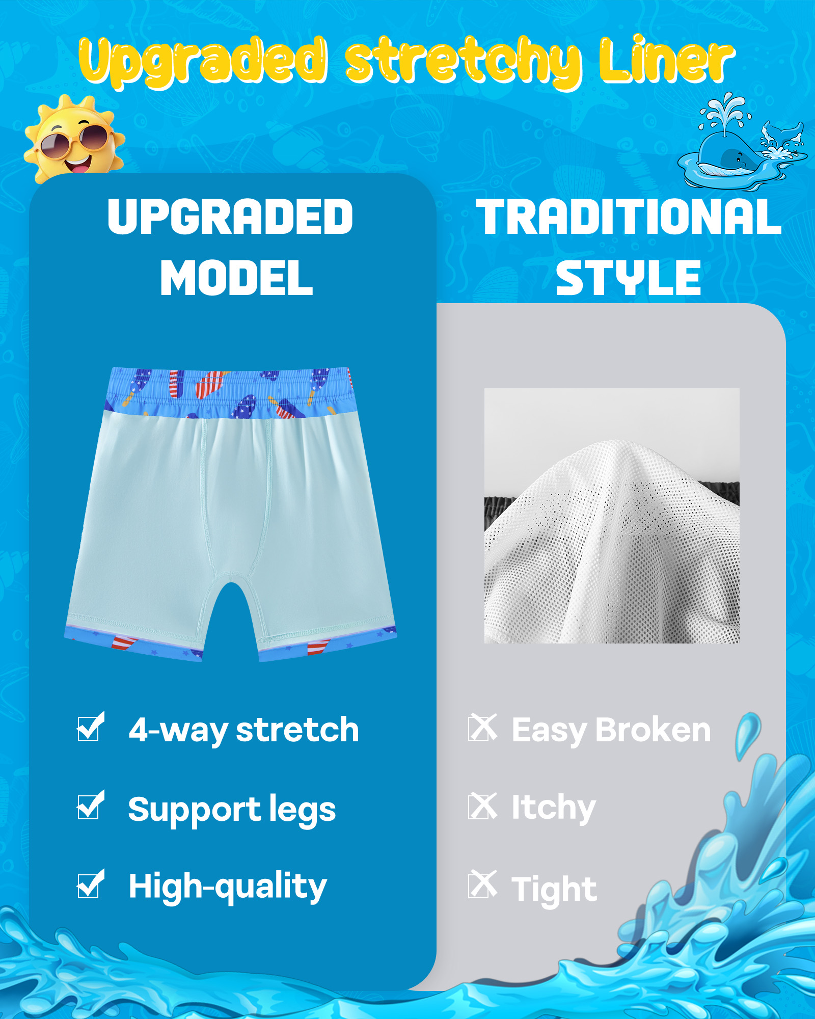 - Built-In Compression Liner: These boys swim trunks feature an integrated compression liner that supports muscles during intense movement, reduces fatigue, and prevents chafing—all while keeping the shorts securely in place.