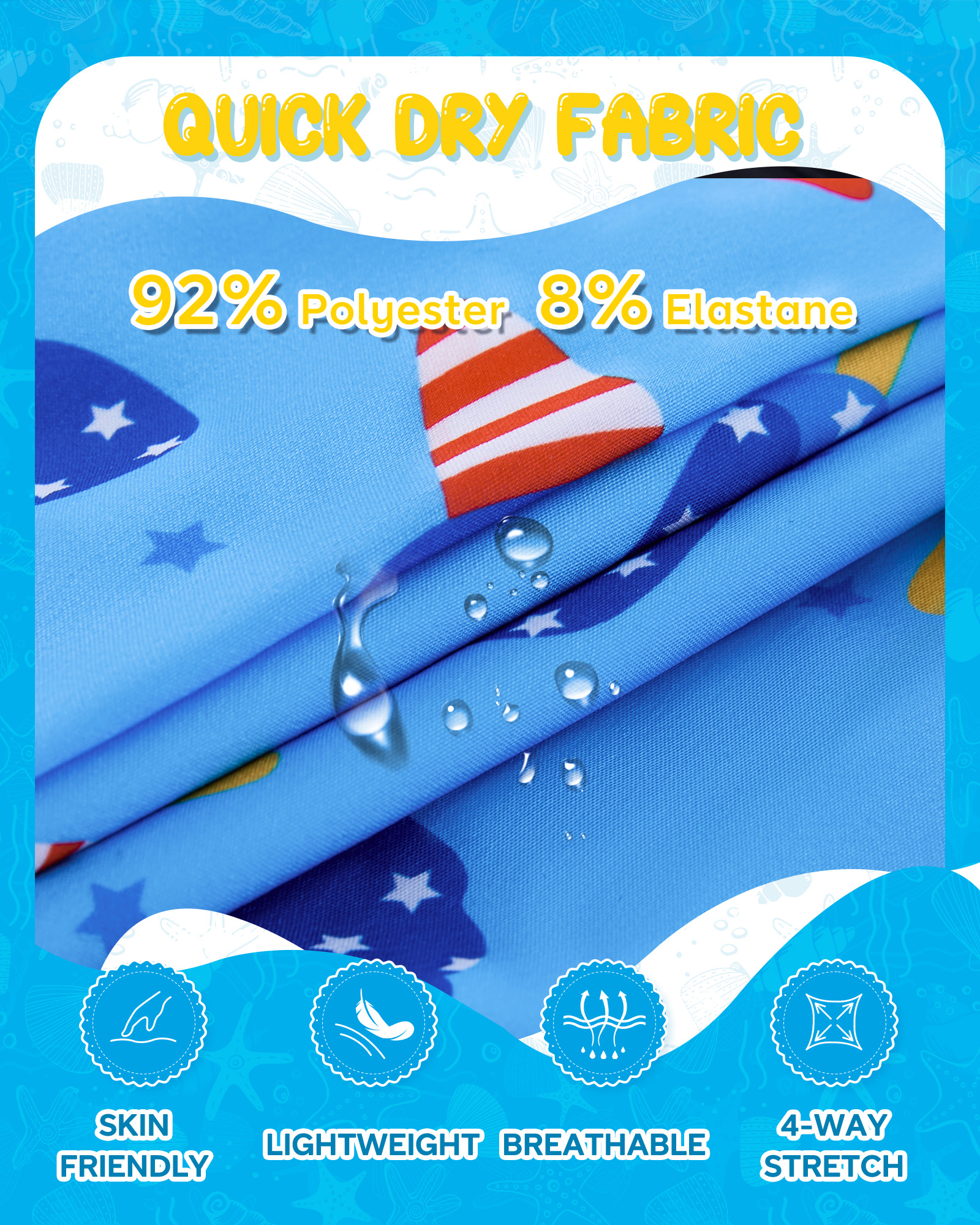 - High-Performance Quick-Dry Fabric: Made from 92% Polyester and 8% Elastane, these boys swim shorts deliver durable 4-way stretch, moisture-wicking comfort, and quick-dry performance for all-day activities.