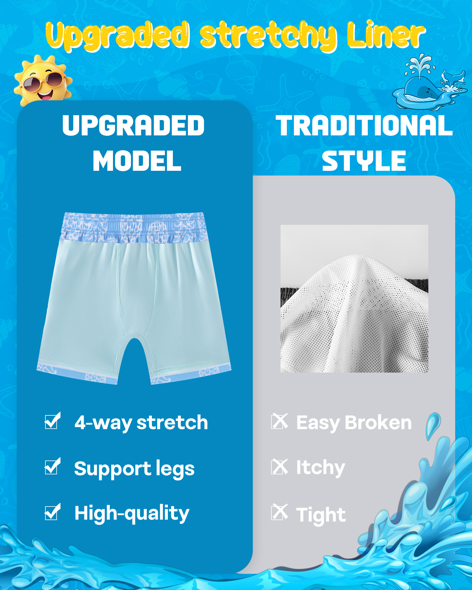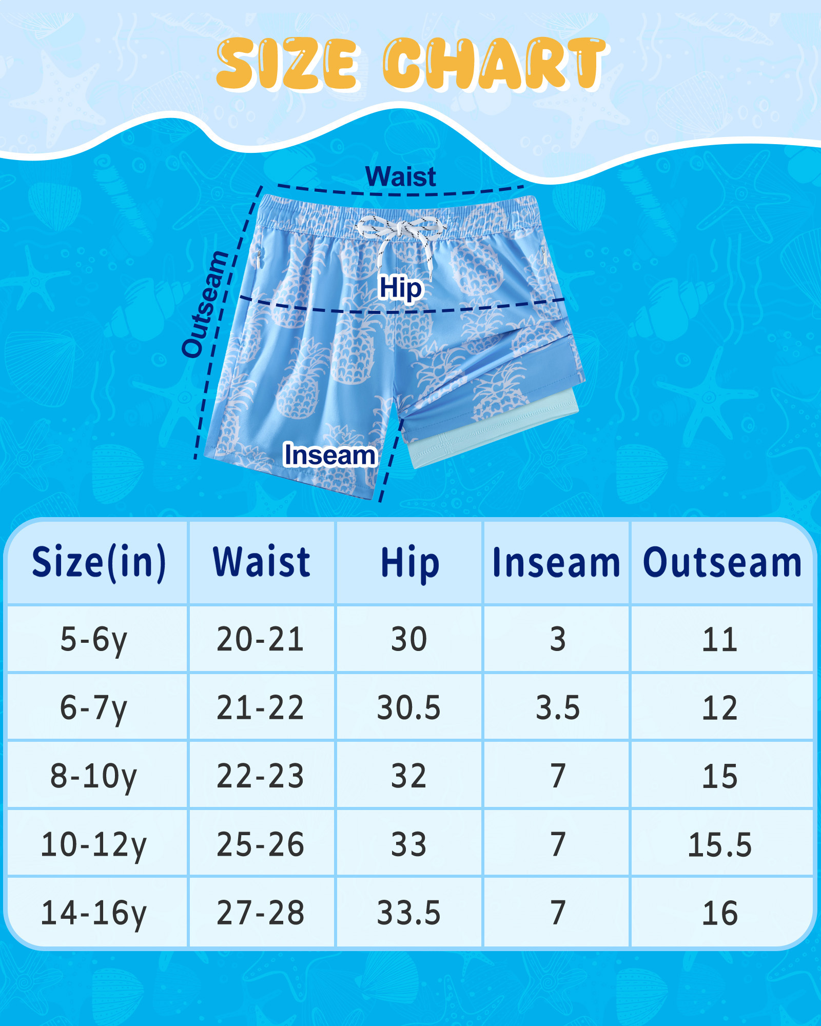 • Built-In Compression Liner: These boys swim trunks feature an integrated compression liner that supports muscles during intense movement, reduces fatigue, and prevents chafing—all while keeping the shorts securely in place.