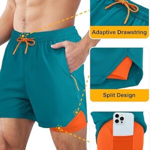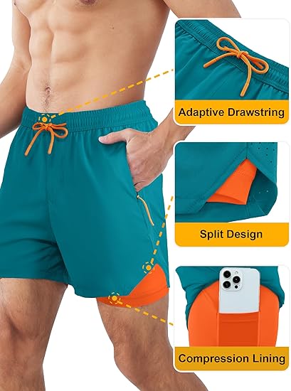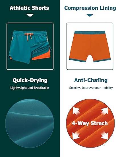 • 2 in 1 Built-In Compression Liner – These men’s athletic shorts feature a super-soft mesh compression liner that eliminates the need for separate baselayers, reducing friction and muscle vibration. The breathable, moisture-wicking liner keeps you dry and fatigue-free, so you can crush leg day or log miles without distractions.