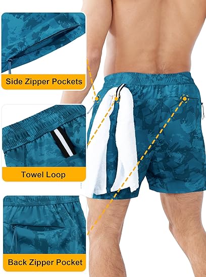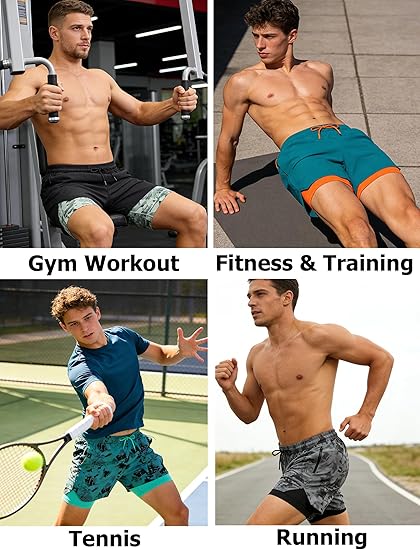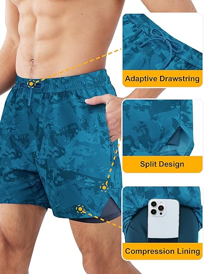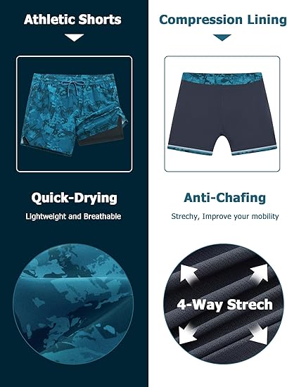 • 2 in 1 Built-In Compression Liner – These men’s athletic shorts feature a super-soft mesh compression liner that eliminates the need for separate baselayers, reducing friction and muscle vibration. The breathable, moisture-wicking liner keeps you dry and fatigue-free, so you can crush leg day or log miles without distractions.
