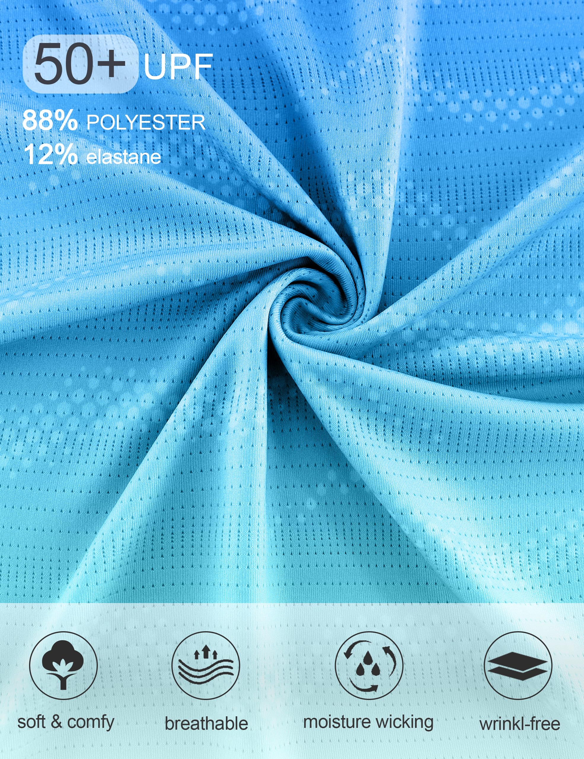 High-Performance Fabric: Made from a superior blend of 88%polyester and 12%spandex,comfortable,soft and fit,lightweight,breathable,quick dry,and moisture-wicking with excellent stretch