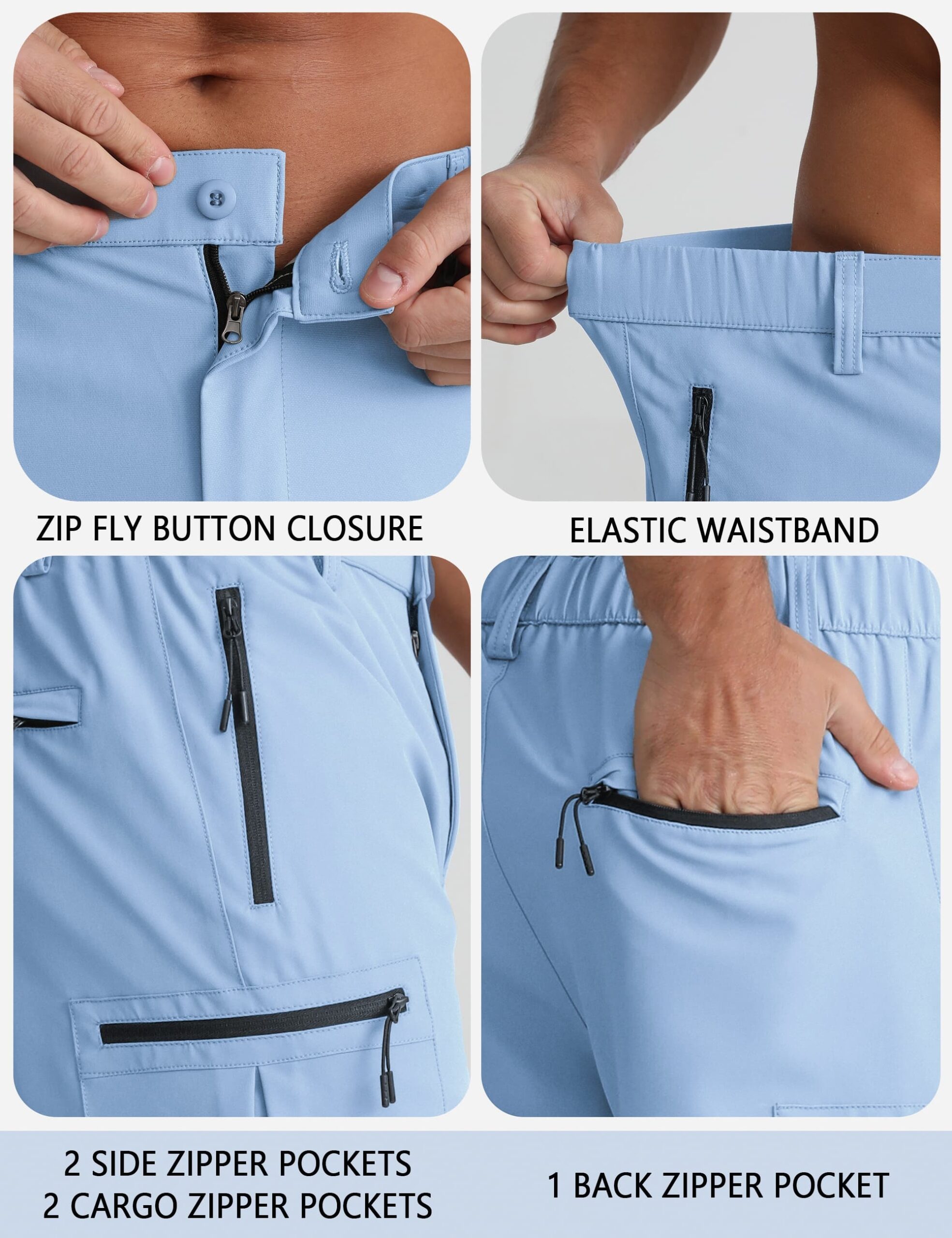- 5 Zippered Pockets—Men’s cargo shorts 9″ have 2 side pockets, 2 zippered thigh pockets, and 1 back pocket, providing secure storage for your cell phone, wallet, keys and more
