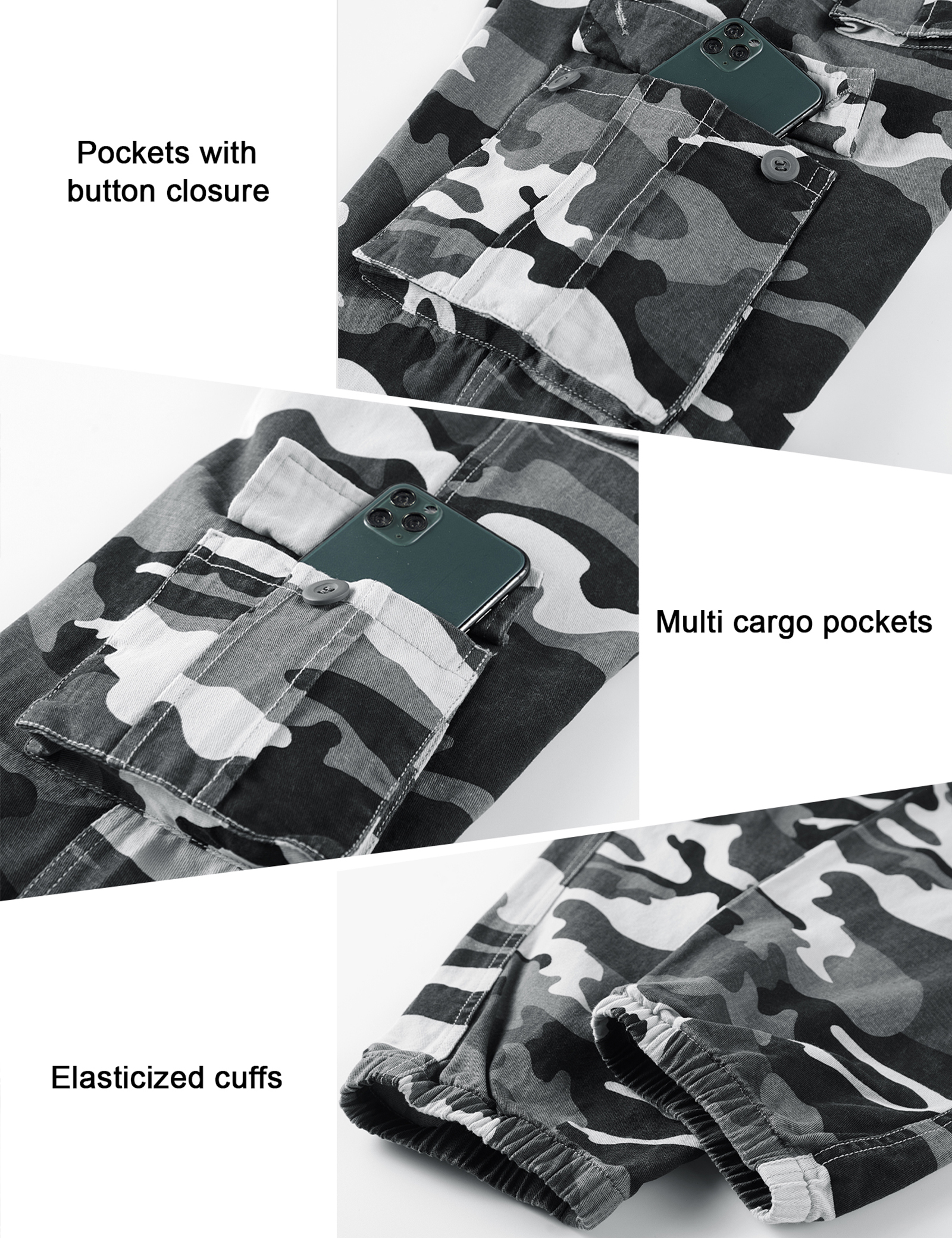 - Multiple Pockets: There are 8 practical pockets in total; 2 slant pockets, 4 cargo pockets and 2 back pockets with button closure for small gadget, great for storing your essentials