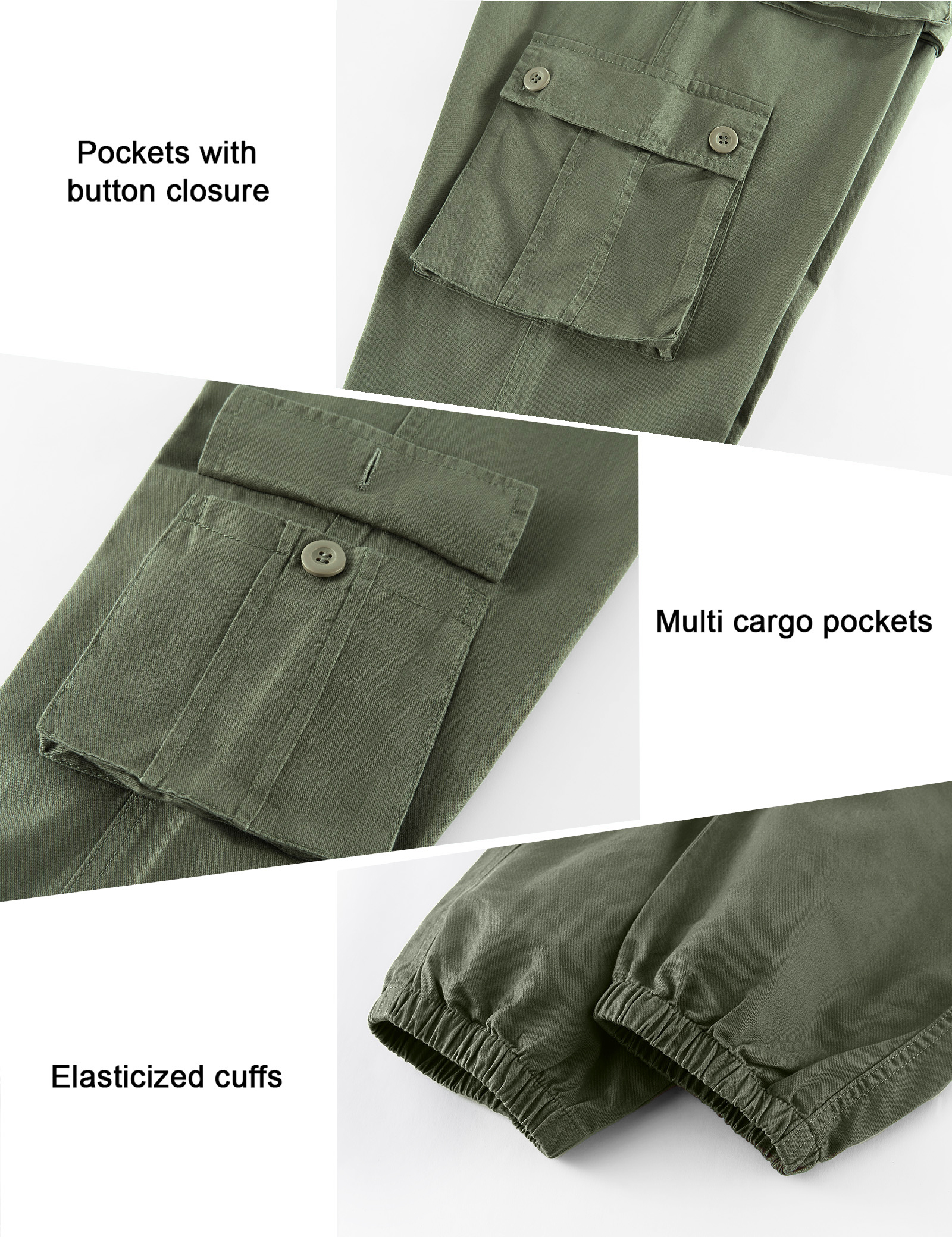 - Multiple Pockets: There are 8 practical pockets in total; 2 slant pockets, 4 cargo pockets and 2 back pockets with button closure for small gadget, great for storing your essentials