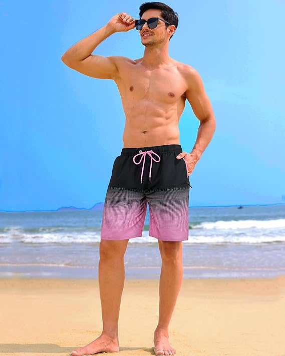 - Mesh Lining for Comfort and Support —These men’s swimming shorts include a built-in mesh liner that offers soft support and helps prevent chafing, so you can stay comfortable during long days in and out of the water.