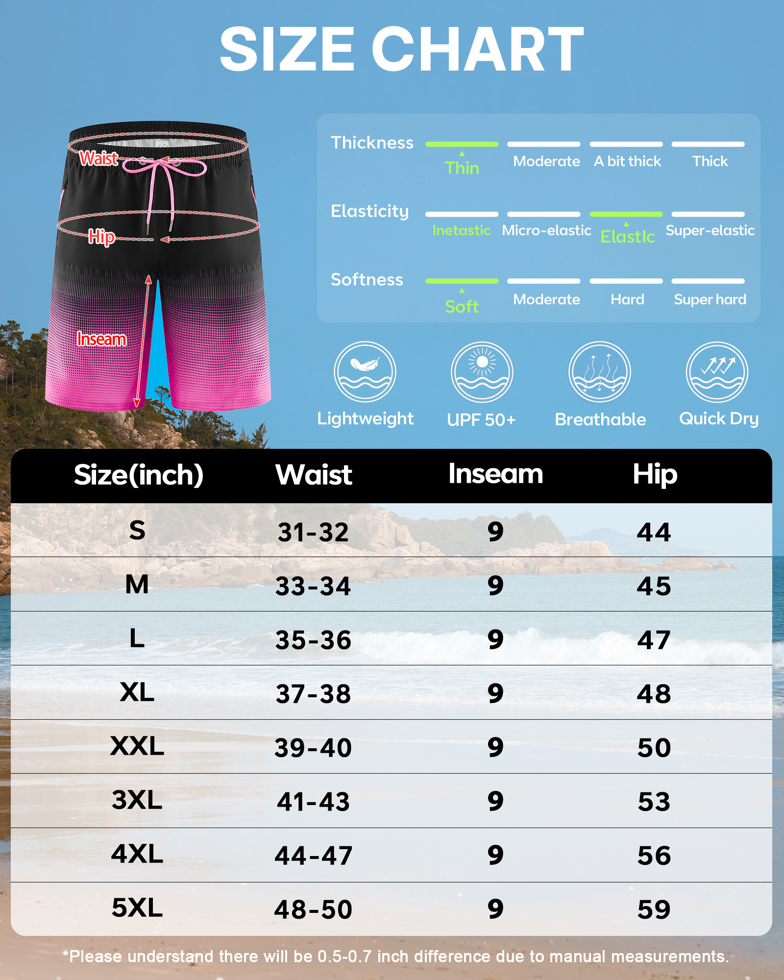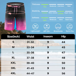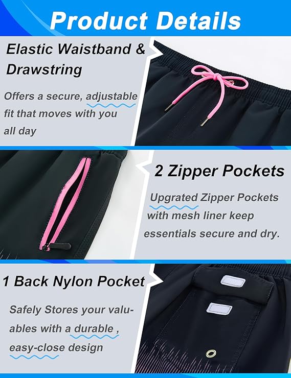 - Classic Fit with Adjustable Waistband —Our swim pants feature a 9″ inseam that hits right above the knee, plus an adjustable drawstring for a secure, comfortable fit—perfect for swimming, hiking, or laid-back weekends.